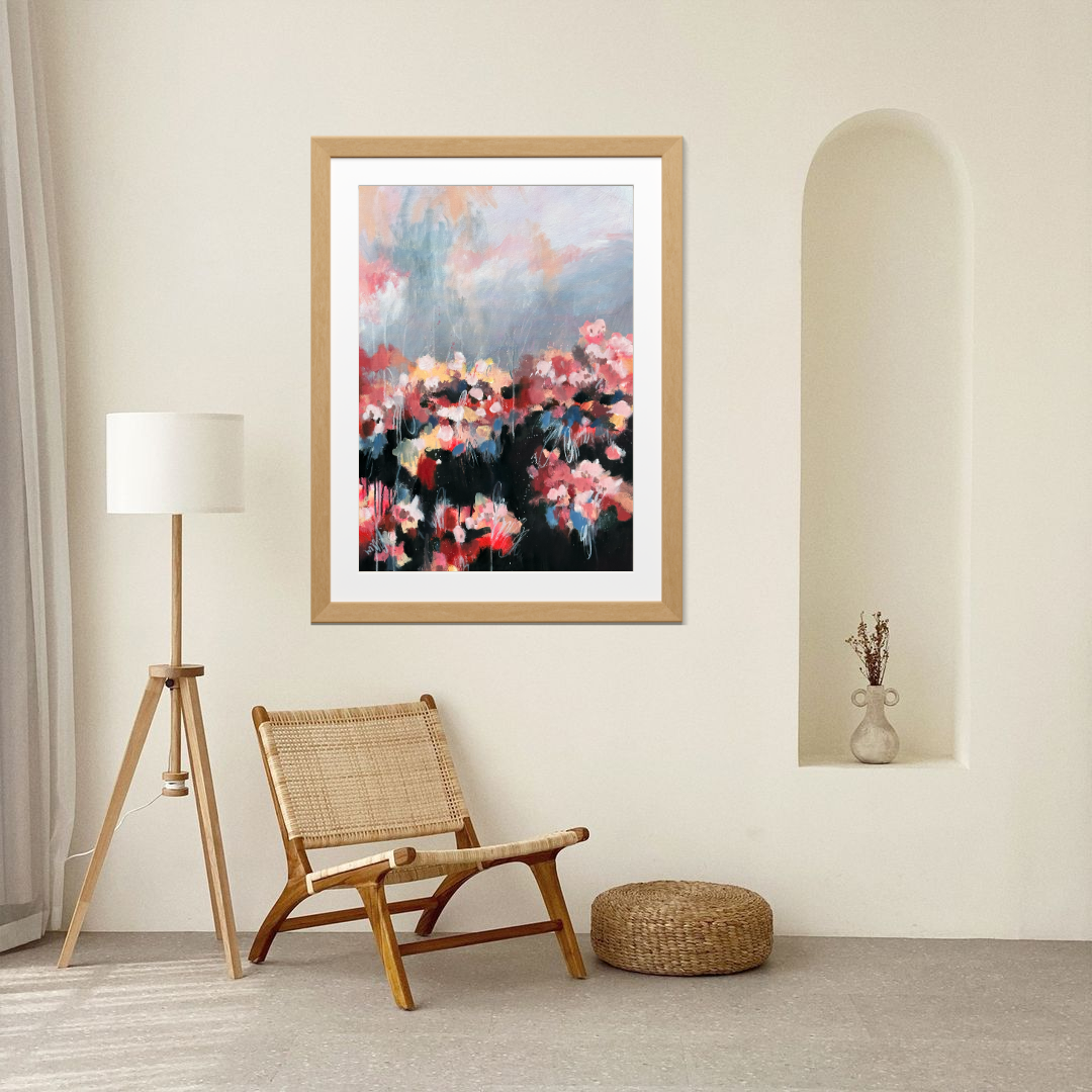 Its soft gradients and ethereal brushwork recall the haze of a west coast dreamscape—blurring the line between memory and possibility. This work is a tender reminder that we are not here to feel happy all the time. We are here to feel.