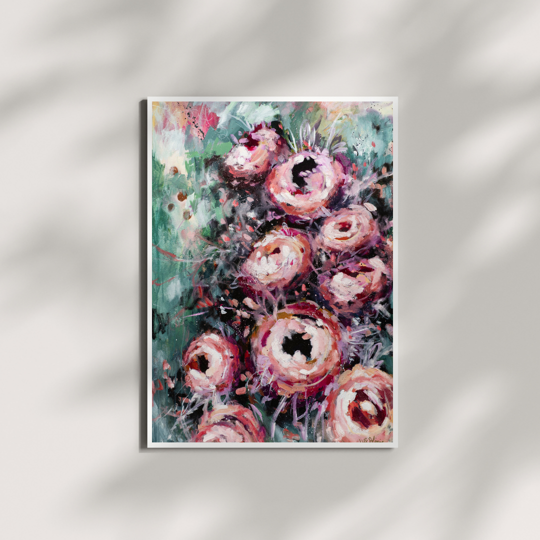 Finding the Light is a 24x36 original painting created with acrylic and oil on 3/4" gallery-wrapped canvas. Inspired by the quiet intelligence of plants and flowers, this piece reflects the steady, instinctual movement toward light—toward what sustains and enlivens us.